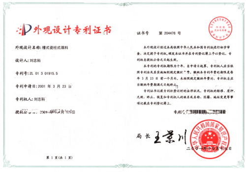 槽式瓷柱填料專利證書生產(chǎn)基地:江西省萍鄉(xiāng)市湘東區(qū)產(chǎn)業(yè)園B區(qū)1-188號